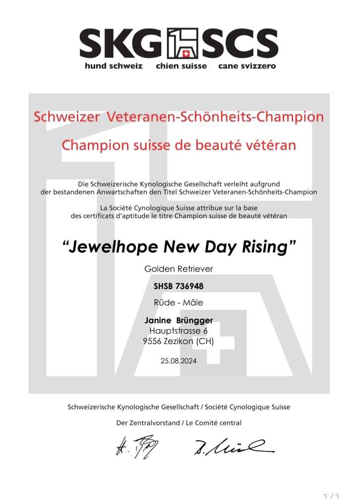 NEMO - Jewelhope New Day Rising gewinnt erneut die Veteranenklasse mit dem VetCAC und wird Bester Veteran der Rasse